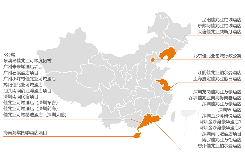 深圳市佳兆業酒店管理有限公司成立于2005年,香港聯合交易所主板上市企業——佳兆業集團控股有限公司旗下全資子公司,負責佳兆業集團酒店板塊業務的運營和管理,以下簡稱佳兆業酒店集團。酒店集團人才結構健全,主要管理人員均為資深專業人士,擁有多年國際知名酒店集團或專業咨詢顧問公司從業背景,從投資籌建至管理運營,可提供全流程專業支持及服務。